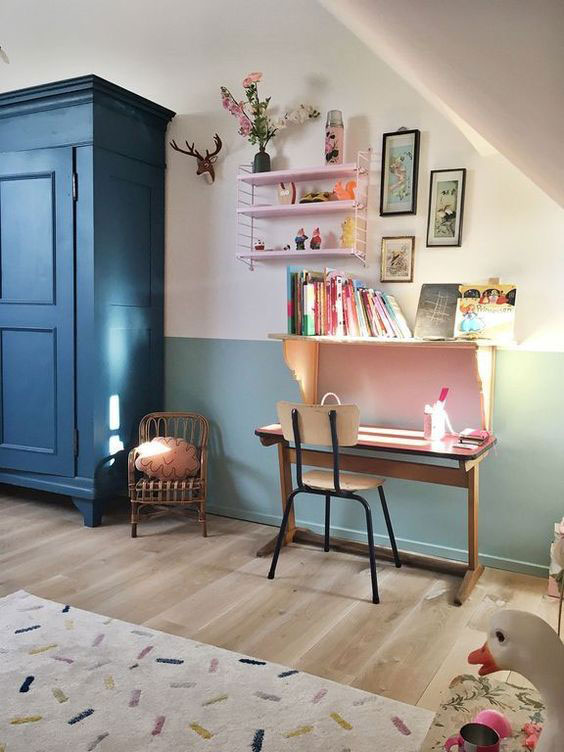 Umesto da ofarbate celu sobu u jednu nijansu, zašto ne biste koristili naprimer tri boje? Možda neke koje su vam ostale od pre? Farbanje zidova je jednostavan način da se dečijoj sobi da potpuno novi izgled, nije potrebno krečiti celu sobu, dovoljno je da okrečite jedan zid. Ukoliko niste sigurni kako da kombinujete boje, napisali smo odličan blog o najboljim kombinacijama boja za zidove koji vam preporučujemo da pročitate.